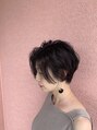 シルエットと毛先の質感にこだわったショートスタイル! カラーはダークブルーでモードなカッコよさをちょっぴりプラス(^◇^) 仕上げにカールをつければ完成!!