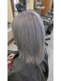 ハイブリーチからラベンダーホワイトのカラーを入れてホワイトのエクステでロングヘアに変身です。しっかりブリーチしないとこの色は出ません。
