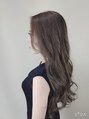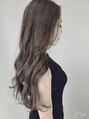 イルミナカラーのヌードをベースにしたグレージュカラーです。ブリーチしてるので染め上がりは少し暗めがお勧めです。仕上げは38ミリのコテでゆる巻き仕上げです。