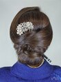 落ち着いた大人向けのアップスタイルです。シニヨンスタイルですが編み込みを入れて少し可愛らしさも演出してます。硬い所への出席でもカジュアルな席でもどちらでもこなせるスタイルです。
