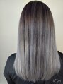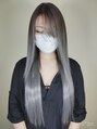 ブリーチしてバカ殿パートカラーしてエクステです。イルミナカラーのヌードとオーキッドのミックスでグレーからシルバーのバレイヤージュカラーです。エクステは80グラム