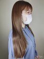 セミロングの髪を160グラムのエクステでロングに変身させました。カラーはアッシュ系のカラー剤の10レベルです。とても女性らしいシルエットです。