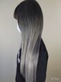 ハイブリーチの履歴を使ってシャドールーツカラーです。シルバー系の色にもっとも強いイルミナカラーを使ってます。ブリーチが弱いとマットに引っ張られるので注意してください。