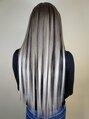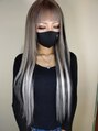 個性派ギャルにおすすめのエクステです。白と黒のエクステを半々の割合でランダムに付けてます。ベースはブリーチした髪にベージュ系イルミナカラーです。