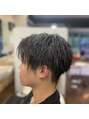 ゆるめのツイストパーマです!ランダムな毛先とボリュームで、頭の形をカバーできます。強すぎない、ナチュラルさを残したい方オススメ!横はツーブロック、後ろは刈り上げです。