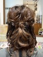 お客様の柔らかい優しい雰囲気に合わせたゆるふわなハーフアップです☆かっちりしすぎないようにルーズ目に作るのがポイント♪結婚式や二次会等のパーティーやイベントにもオススメのヘアスタイルです☆