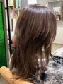 すきバサミ不使用のカットで毛先のツヤ感を損なわないように柔らかくカットしてます♪毛先をアイロンで軽くワンカールするだけで楽チンにスタイリング出来るので、お手入れ簡単☆カラーはベージュ系をベースに少しだけウォーム系の色味をMIXして春仕様に☆