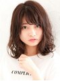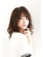 ウェット質感で魅せるウェーブミディアム。パーマでつくればバームを揉みこむだけで仕上げる楽ちんスタイリングで雰囲気◎結んでアレンジもざっくり結ぶだけでカワイイウェーブに!大人かわいい斜めバングで伸ばしかけの人にもおおススメ!