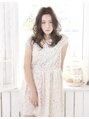 ほわほわくるんなカールで、お人形のような女の子に大きめのロッドで上からランダムなカールをつけ、バングはラフにセンターパートにすることで甘さの中にも引き締め効果を。