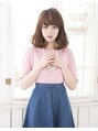 眉上でふわりと動く前髪が、さらに可愛さアップの、コロンと丸い王道ロマンティックボブ』毛先のみ大きなカールをつけ、バングはやや流れるように。さらに動きがでるように、所々に隙間を。