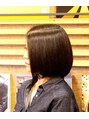 ダークグレーカラーのボブスタイル毛先ははやりのブラントでラインが出るように切らせていただきました☆軽くうちに入れて仕上げると可愛らしく、まっすぐに仕上げるとクールな感じに!!