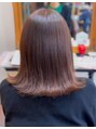ベージュをベースに赤味のあるブラウンを少しだけ混ぜてベージュカラーに深みをプラス!カットは外ハネにスタイリングしやすいように!トリートメントもしてサラサラになりました!