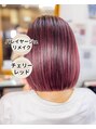前回のバレイヤージュを活かしてカラーチェンジ!チェリーレッド♪今回はリタッチブリーチ無し!髪質強化ケア!切れないように、最善のケアをしながら施術させていただきます♪ご相談ください!