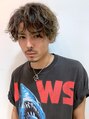 重なり合う毛先のカールで無造作感を。全体にハイライトで奥行きを出しています。コンマヘアを少し荒々しく、男っぽい印象に♪
