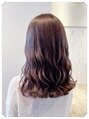 落ち着いた艶ブラウンで透明感と奥行きをプラス。★似合わせカットで顔周りや表面にレイヤーを入れ、小顔効果を最大限に引き出します。上品なディープウェーブで、乾燥に負けないリッチなツヤ感とボリュームを演出。大人女性のためのラグジュアリースタイル♪