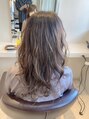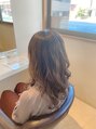 全体に細かく入れたハイライトとオンカラーはベージュ強めのブランジュを入れてます。光の当たり具合で透け感が強く出る大人可愛いカラーリング。結ぶと細かく入れたハイライトが目立たなくなるので、職場でもバレにくいです。巻くと更に◎