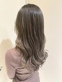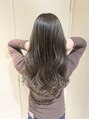 極細エアタッチハイライト×ベース7トーンの落ち着いたグレージュで、職場の規定が厳しい方でも大丈夫なカラーリングです。紫シャンプーをすればアッシュ系のカラーに変化しながらオレンジ味も抑えてくれるので長く楽しめます。大人可愛いカラーリングに。