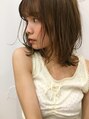 切りっぱなしボブミディ。肩につくくらいの長さで、レイヤーを入れてくびれ感のあるスタイルに。前髪は、シースルーバングで薄めに。カラーは、アッシュベージュてま柔らかい色味に。