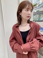 ナチュラルな外ハネレイヤー。レイヤーを入れすぎない切りっぱなしミディアム。少し表面にレイヤーをいれて毛先の軽さを出します。