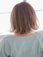 肩にあたる長さで切りそろえた切りっぱなしのミディアムボブ。切りっぱなしボブは毛量が多い方だと全体的に思ためな印象になってしまいがちですが、シースルーバングにすることで軽い印象がプラスされてバランス良く仕上がります。