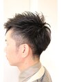 左右で刈り上げの位置を変えています!!休みの日はツンツン仕事の時は七三分けでジェルなどでおさえればカッチリなスーツスタイルにもいけますよ。メガネなども合います!!