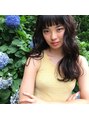 パッツン前髪とウエーブhairパツッとした前髪に、根元からのしっかりウエーブhairで可愛らしさと、女性らしさを。ウエーブhairがダークトーンカラーでも、重すぎず、雰囲気を出します。カットは、重ためラインにレイヤーを入れて動きのあるスタイルです。