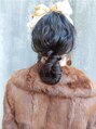 全体をwaveに、あとは、ゆるっとまとめて、スカーフを巻く。簡単だけど、雰囲気あるarrangeです。カラーは、落ち着いたベージュブラウンで透明感を。