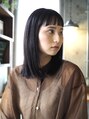毛先と前髪に重さを残してラインの強調されるミディアムスタイル。前髪は眉上でカットすることで毛先の長さとの差が出ておしゃれ度アップ◎
