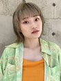 グリーンベージュのボブスタイル♪王道ベージュに一癖つけたカラーリングです^_^赤みが苦手な方はおすすめですよっ!