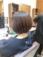 襟足すっきりの真っ直ぐなローグラデーションボブスタイルです。ワンレングスより丸みがあるので綺麗に内巻きになりやすいです。カラーはレッドヴィオレットブラウンです。