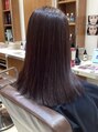 肩に付くワンレングスのストレートスタイルです。カラーはレッドヴィオレットブラウンです。ナチュラルドライでOKです。
