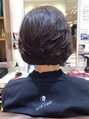 襟足すっきりのレイヤーボブスタイルです。トップからレイヤーを入れる事でサイドからバックにかけてかるくながれのあるスタイルになります。カラーはレッドヴィオレットブラウンです。毛先にパーマをかけるとながれやすくなるのでお勧めです。