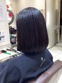 しばれるぐらいのレングスの前下がりのボブスタイルです。グラデーションが少しあって内巻きにしやすいです。ナチュラルドライでOKです。
