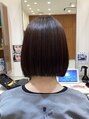 ワンレングスの切っぱなしボブです。床に対して平行でまっすぐなラインは上を向いても下を向いても綺麗なラインでいられます。ナチュラルドライでOKです。セット剤はオイル系を毛先に少し馴染ませるとウェット感が出ますよ。
