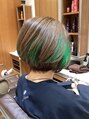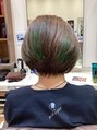 襟足を甘く残し、あまりショートになり過ぎず、落ち着いた感じのグラデーションボブスタイルです。カラーはベージュブラウンにグリーンのインナーカラーが入っています。ナチュラルドライでOKです。