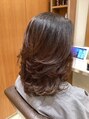 肩に少しつくレングスから全体にレイヤーの入った前上がりのミディアムレイヤースタイルです。カラーはベージュブラウンです。ナチュラルドライでOKです。コテで巻き髪にするとエレガントになって素敵ですよ!