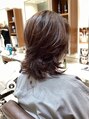 肩に少しつくレングスからバックがハイウエイトでくびれた感じのミディアムハイレイヤースタイルです。カラーはベージュブラウンです。くせ毛の方はナチュラルドライでOKです。パーマをかけるとより動きが出ますよ。