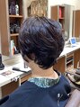 襟足を甘く残したショートレイヤースタイルです。全体にレイヤーが入っているので手ぐしで流れやすく、パーマをかけると動きが出るのでお勧めです。カラーはナチュラルブラウンの酸性タイプです。ナチュラルドライでOKです。