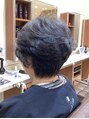アウトラインを甘めに残し、全体にパーマがかかったショートレイヤースタイルです。サイドは少し長さを残してますが耳にかけるとタイトに仕上がりますよ!ナチュラルドライでOKです。カーラーを巻くとエレガントな仕上がりになりますよ!