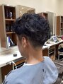 ツーセクションのメンズパーマスタイルです。サイドとバックのアンダーセクションはすっきり刈り上げてはち上だけパーマがかかったスタイルです。ナチュラルドライでOKです。パートの位置を変えたり、パートなしの放射状に乾かしても良いですね!