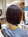 肩に付かないぐらいの前下がりボブスタイルです。上を向いても下を向いてもいつも綺麗なラインでいられます。カラーはベージュブラウンです。ナチュラルドライでOKです。