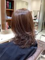 肩に少しつくレングスから全体にレイヤーの入った前上がりのミディアムレイヤースタイルです。カラーはベージュブラウンにハイライトを入れる事で動きが出ます。ナチュラルドライでOKです。コテで巻き髪にするとエレガントになって素敵です。