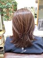 肩につくレングスから全体にレイヤーの入ったミディアムレイヤースタイルです。カラーはライトピンクブラウンです。ナチュラルドライでOKです。コテで巻き髪にするとエレガントになって素敵ですよ!