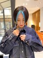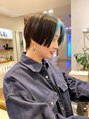 ハンサムショートのセンターパート の部分だけを水色にしたデザインカラー。少しだけど効果は抜群!!人とは違ったハンサムショートへ!サイドのラインもあえてプツッと感を残したスタイル♪