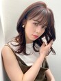 顔まわりのレイヤーカットがポイントのセミロングに柔らかい透明感のあるココアブラウンカラーで大人っぽさのあるスタイルです。