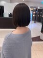 毛先は自然に内に収まるようカットし、乾かすだけでまとまる扱いやすさが魅力です。首元がきれいに見えるナチュラルストレートボブ。