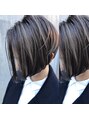 赤みを完全に消した外国人風ハイライトグレージュ☆全体に細かめのハイライトを入れてあるのでオフィスやバイトの規定がある方でもご安心ください♪前下がりベースの切りっぱなしボブで大人かわいい印象に!似合わせカットでこなれた大人ボブに☆