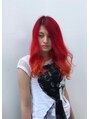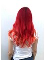 ディープレッドからレッドオレンジまでのグラデーションが綺麗ですね。グラデーションカラー・マニックパニック・レッドエクステはは代官山・渋谷・中目黒から近い美容室 美容院ラブロックへ。
