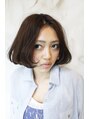 色は、アッシュ系で赤味をおさえたAラインふんわりボブ