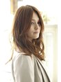 前髪を伸ばしかけの方にオススメロングスタイル。ツヤのあるカラーリングで女子力アップ。毛先をゆるめにスタイリングで内巻きにするのが今風です。